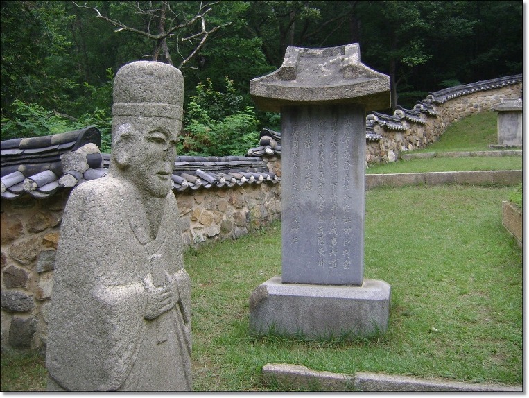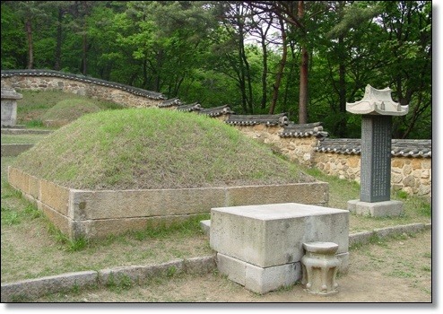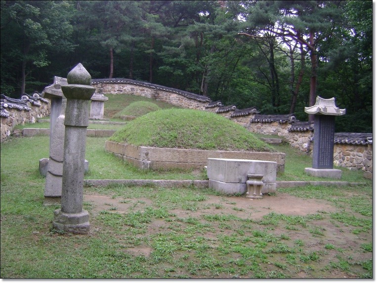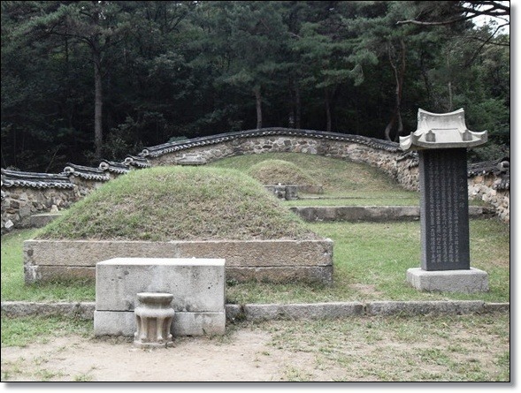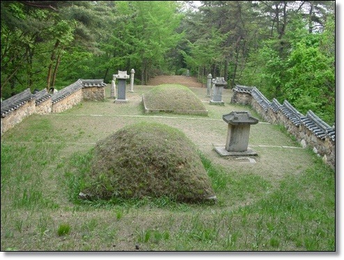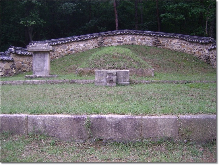 동국여지승람(東國輿地勝覽)에도 " 무덤 위에 지금까지 풀이 나지 않는다. (至今塚上不生草) "라고 기록되어 있어 조선 중기까지 붉은 무덤이었슴을 알 수 있다. 지금 잔디가 그의 묘소를 덮고 있는 것은 조선왕조가 亡한 뒤 그의 후손들이 묘소를 단장하면서 새 잔디를 입혔기 때문이다. 이 후손은 유명한 역사학자이며 독립운동가인 최남선의 부친 최헌규가 1928년 묘를 새로 단장하였다.
