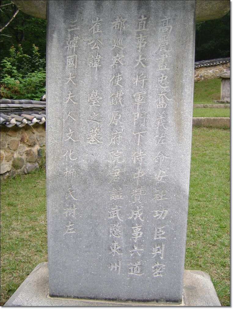 뒷편 최영의 부친 최원직의 묘이다. 비문(碑文)은 최영장군의 친필이라고 한다.