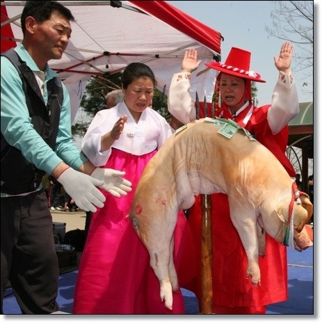 무속인들은 2년에 한번씩 음력 3월에 도당굿을 하고, 전국의 무당들이 모여 최영장군이 제사를 지낸다. 굿이 끝난 다음에는 일명 성계육(成桂肉)이라고 불리는 돼지고기를 씹어 먹는 것이 관례로 되어 있다. 원통하게 죽은 최영장군의 넋을 위로하고, 그를 죽인 이성계를 저주하기 위하여 돼지고기를 이성계의 살이라 생각하고 씹어 먹는 것이다.