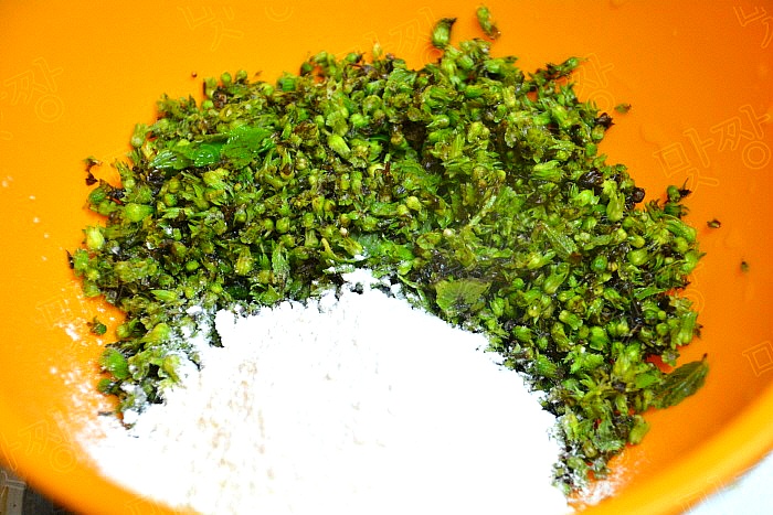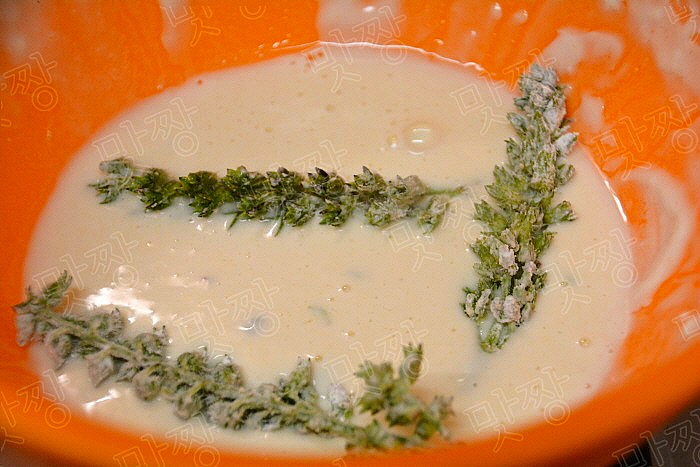 요긋은 들깨 꽃송이만 흩어낸후에 부침가루 넣어 부침으로 만들 것입니다.