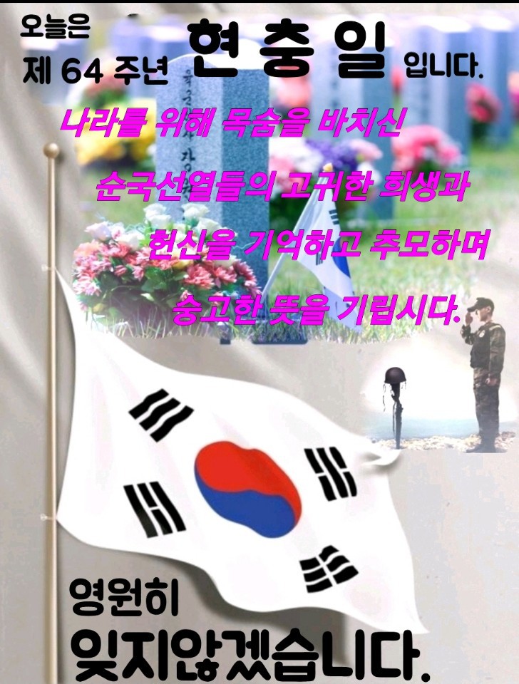 제64주년 현충일(2019.6.6.목); 진혼곡 작성자황동춘(베드로)|작성시간19.06.06|조회수44 목록 댓글 1 글자크기 작게가 글자크기 크게가 (진혼곡 동영상입니다.) 다음검색 현재 게시글 추가 기능 열기 북마크 신고 센터로 신고 댓글 댓글 1 댓글쓰기 답글쓰기 댓글 리스트 작성자황동춘(베드로) 작성자 본인 여부 작성자 | 작성시간 19.06.06 호국 영령들의 영혼을 위하여 기도합니다!~~~~~하늘나라에서 평안한 안식을 누리소서!~~~~ 댓글 전체보기