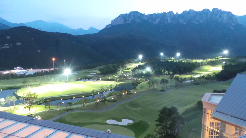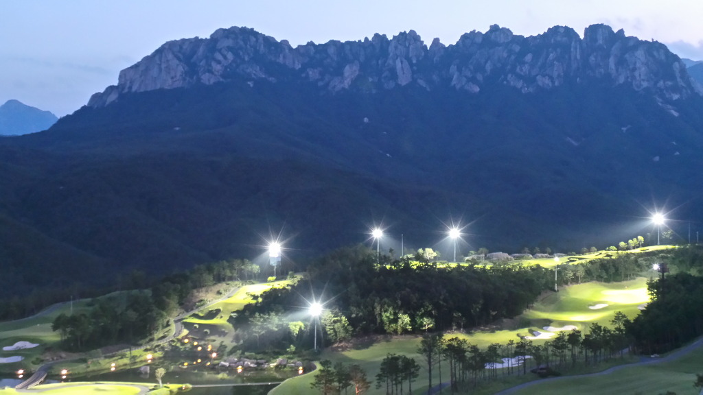 델피노 리조트 골프장에 조명이 켜지고 있습니다...