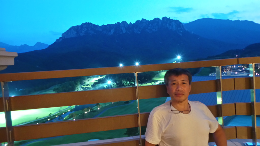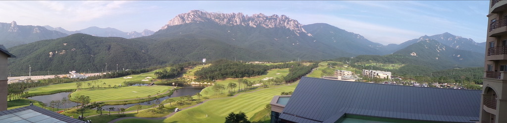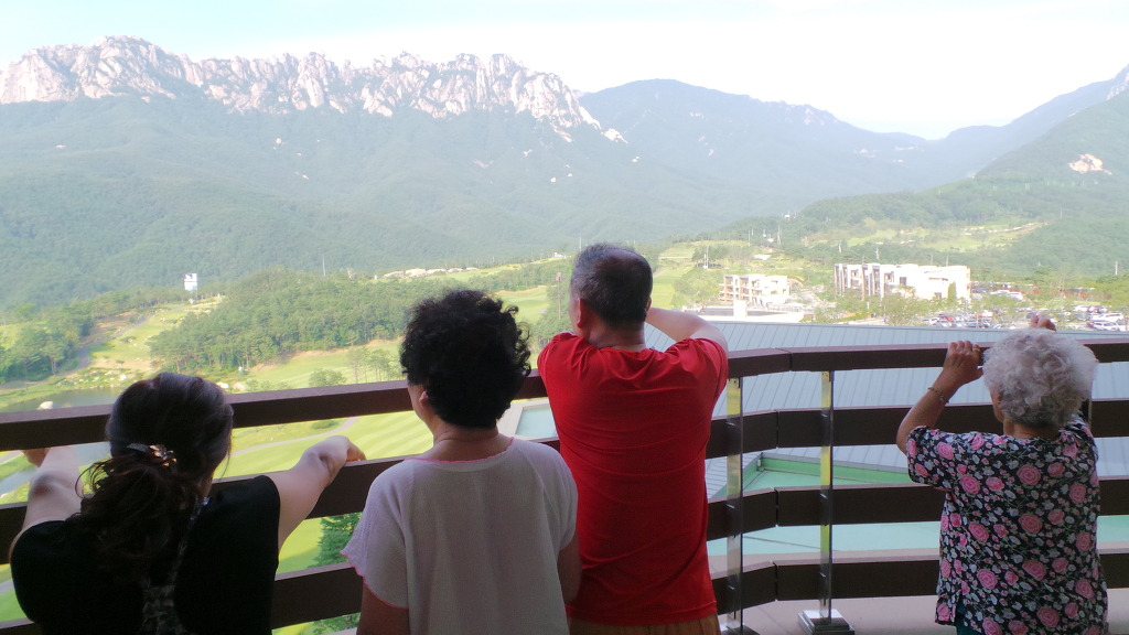 델피노 콘도 발코니에서 울산바위와 콘도 골프장을 배경으로 사진도 찍어보고.....