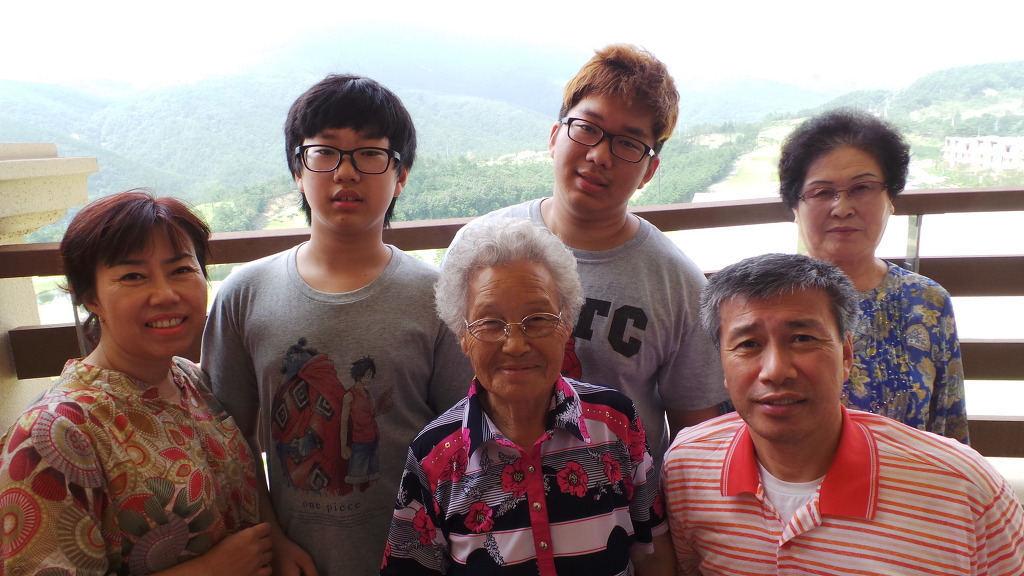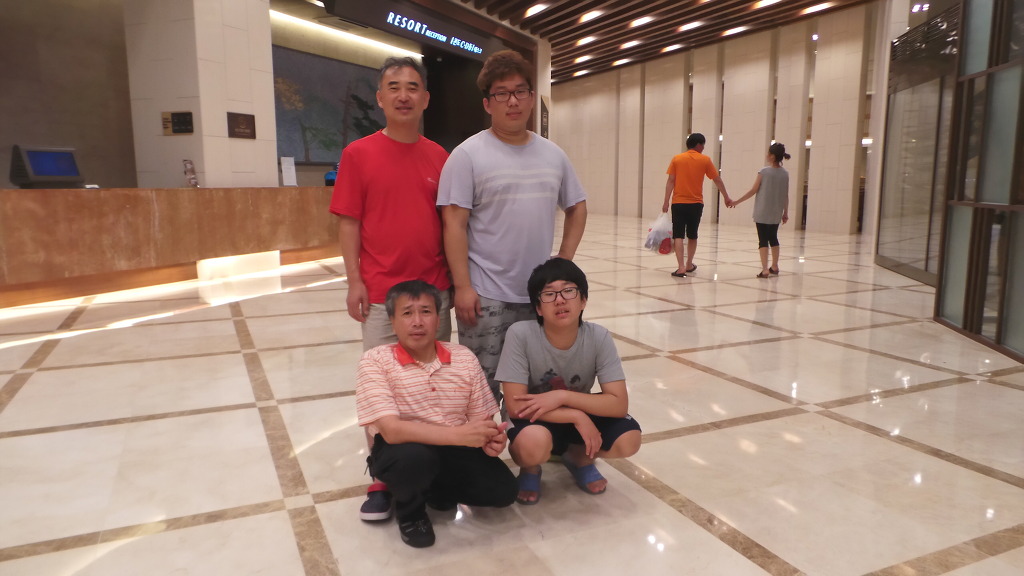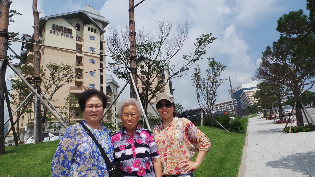 지하주차장에서 차를 가지고 나오는 동안 두어르신과 여동생이 기념사진을 찍습니다.