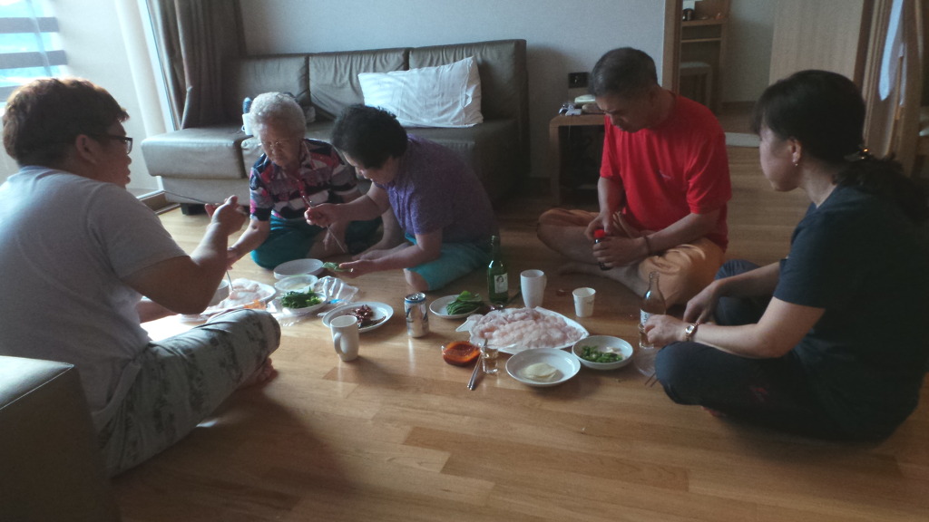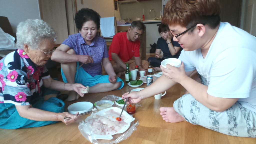 이제 델피노 콘도 숙소에 도착해서 오면서 사온 각종 횟거리를 먹습니다...^^*