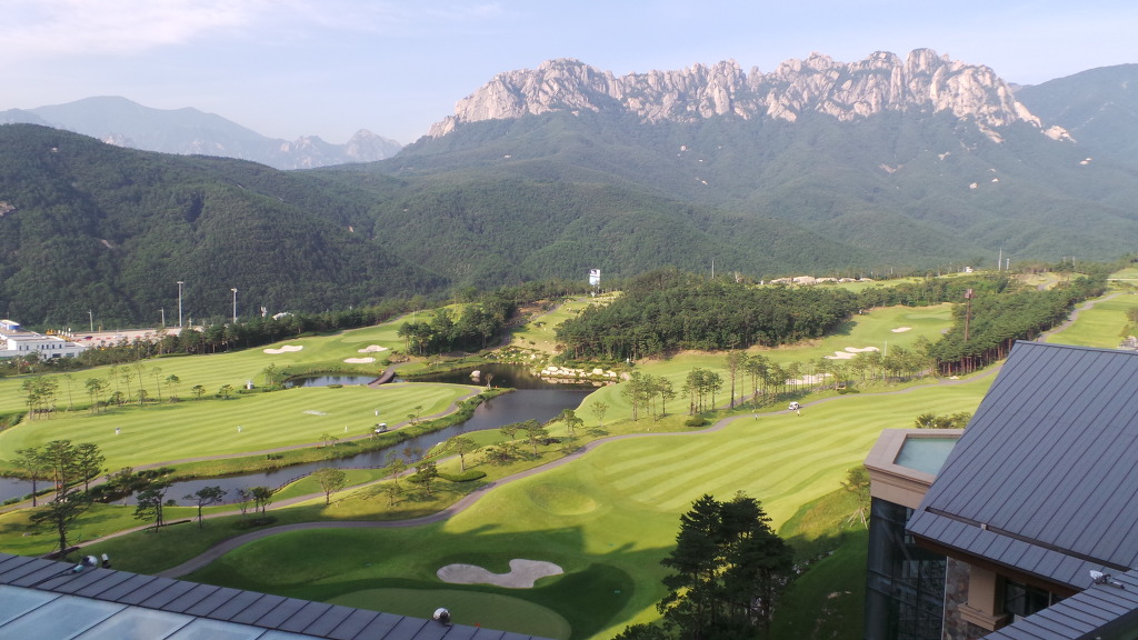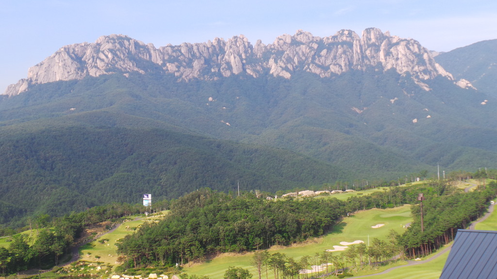 아침 햇살에 선명하게 보이는 울산바위와 델피노 리조트 골프장이 시원스럽게 보입니다...