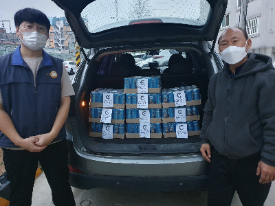 교촌에프앤비에서 감귤음료를 기부해주셨습니다.