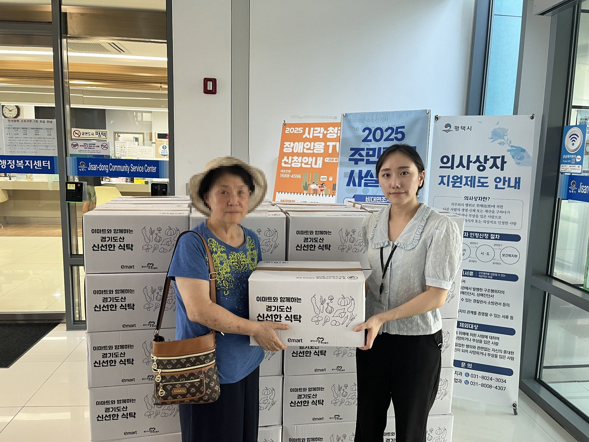 이마트의 ‘신선한 식탁’ 사업 일환으로 친환경 농산물 꾸러미를 지역 내 차상위 계층 가정에 전달했습니다.
