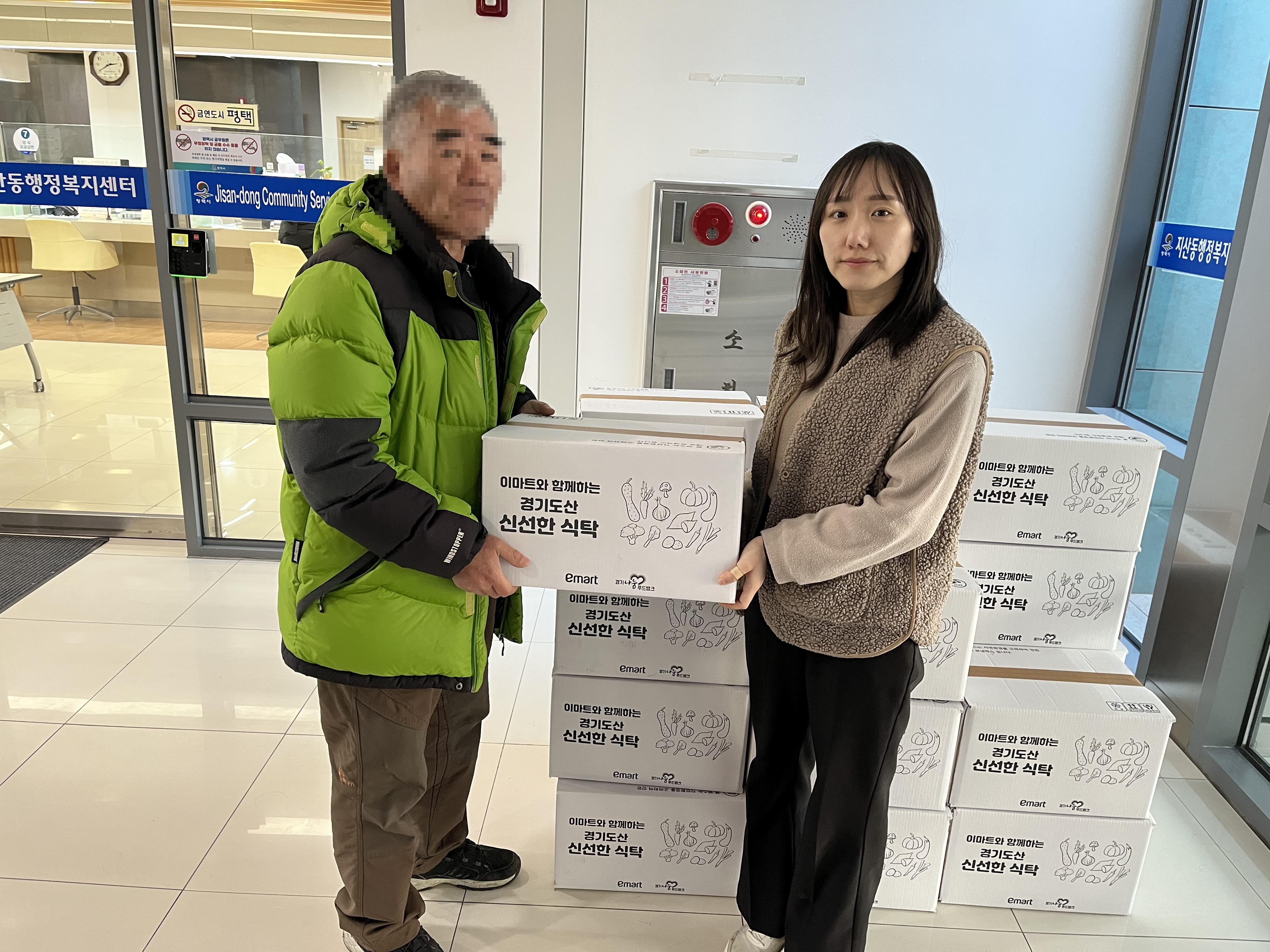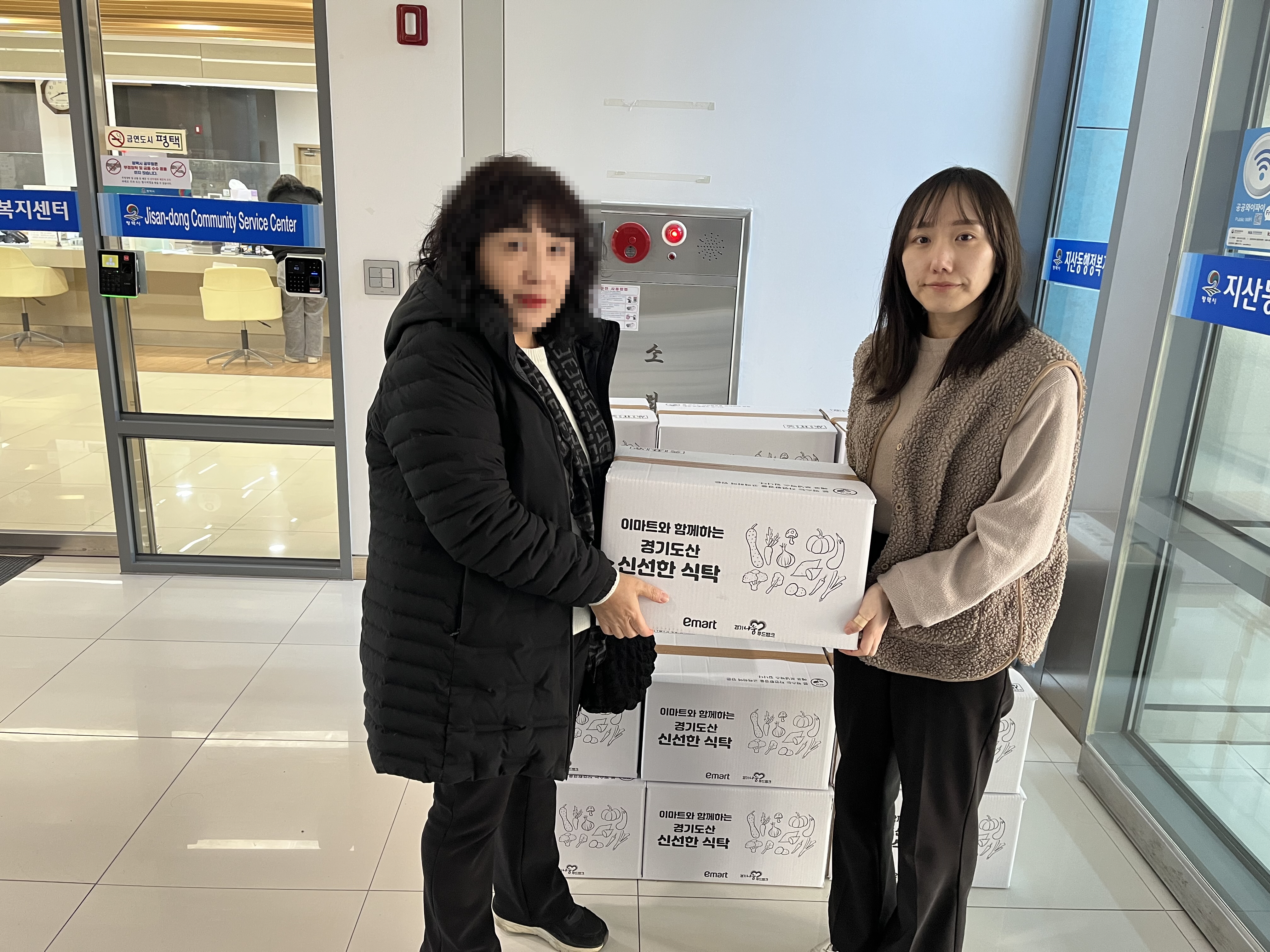 송탄푸드뱅크 소장 (임재효)는 14일 이마트 「신선한 식탁」 사업의 친환경 농산물 꾸러미를 지산동행정복지센터