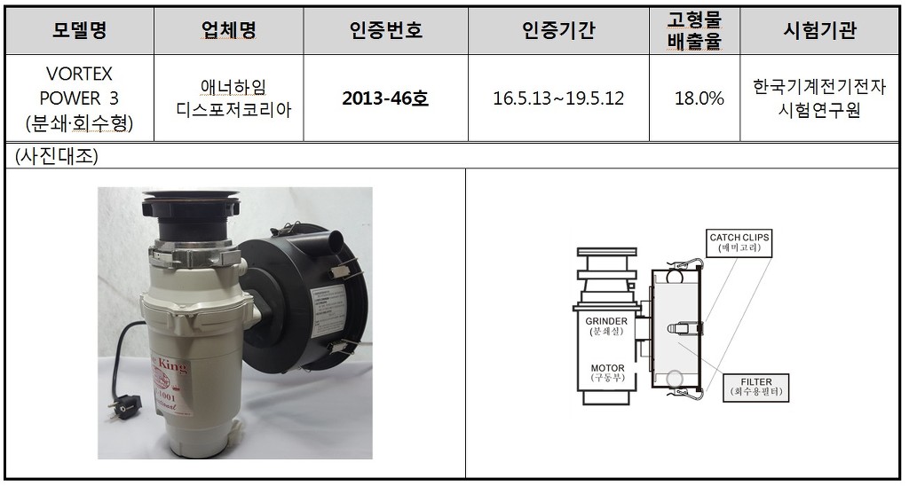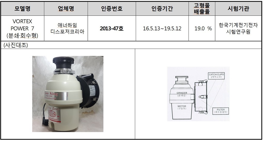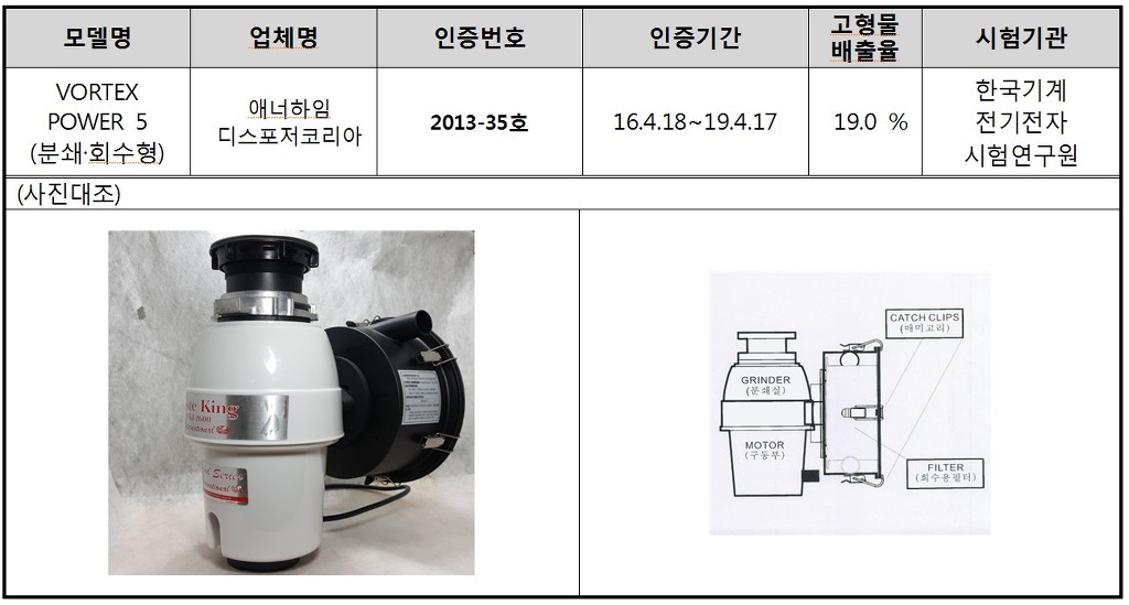 : 환경부 인증이 없는 업체 -> 디스포저로 정식수입 불가능