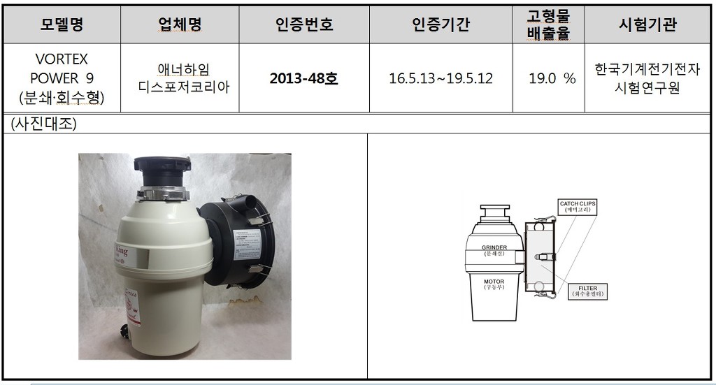 수많은 제품중 분쇄형타입은 불과 10여개의 제품만이 재인증에 합격되었고,