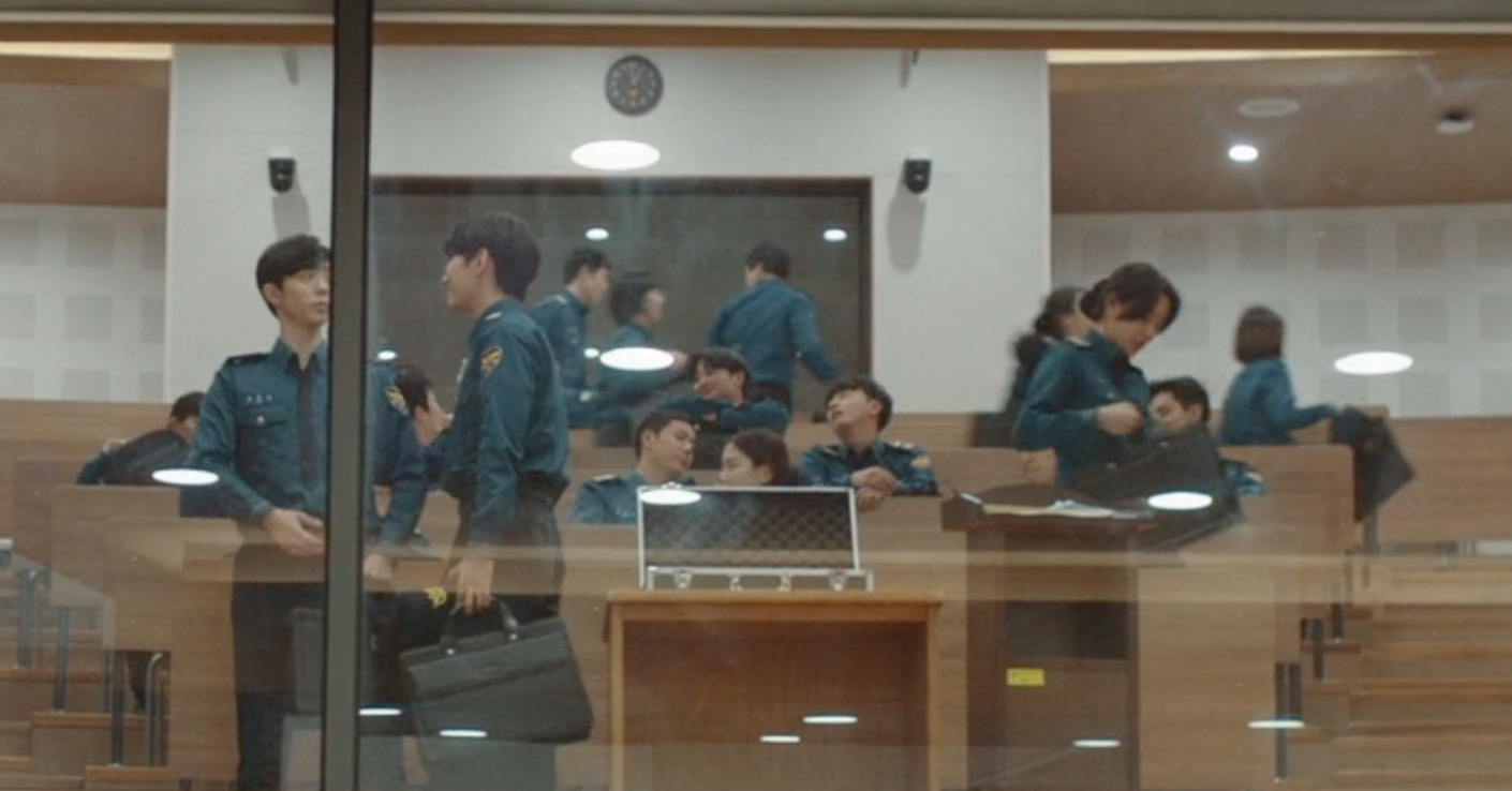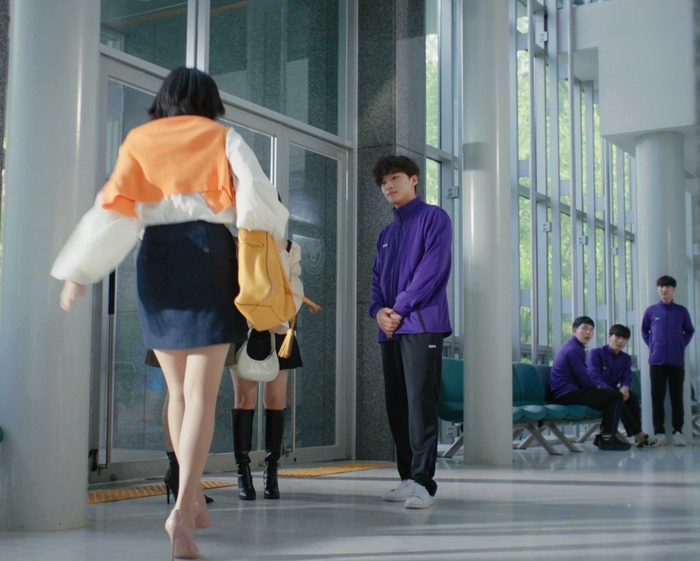 시험 끝나고 나가는 장면인데요.. 아마 여기선 잘라놓은 왼쪽 계단으로 내려가는 남학생들 쪽으로 시선이 대부분 가셨을 겁니다.