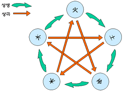 오행은 상호 상생하거나 상극관계를 가진다는 것입니다.