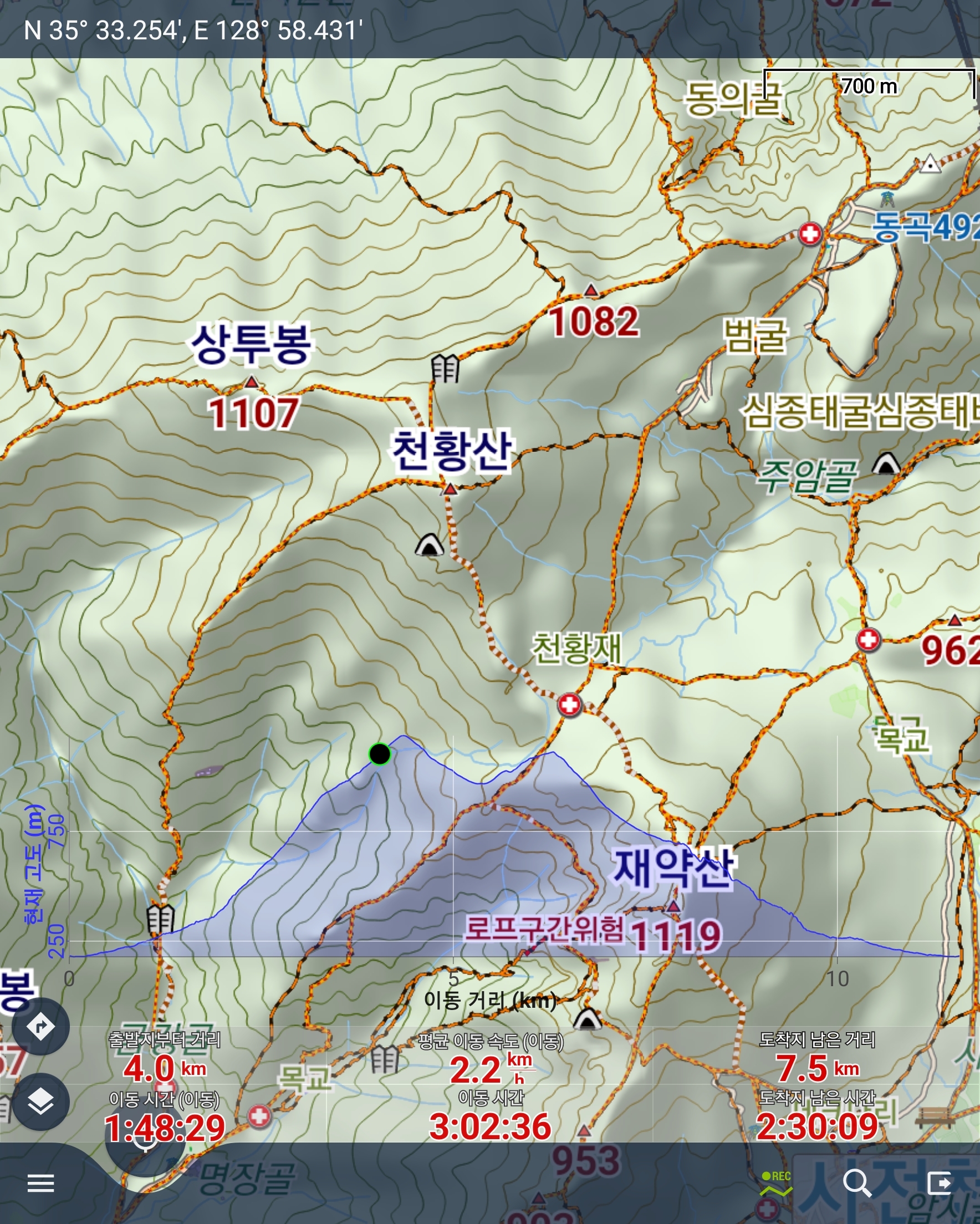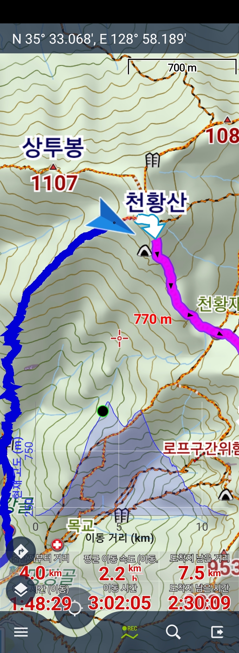 1. 화면을 펴서 루트불러오고-따라가기 누르고- 레코딩 눌러 산행하셔야겠습니다.