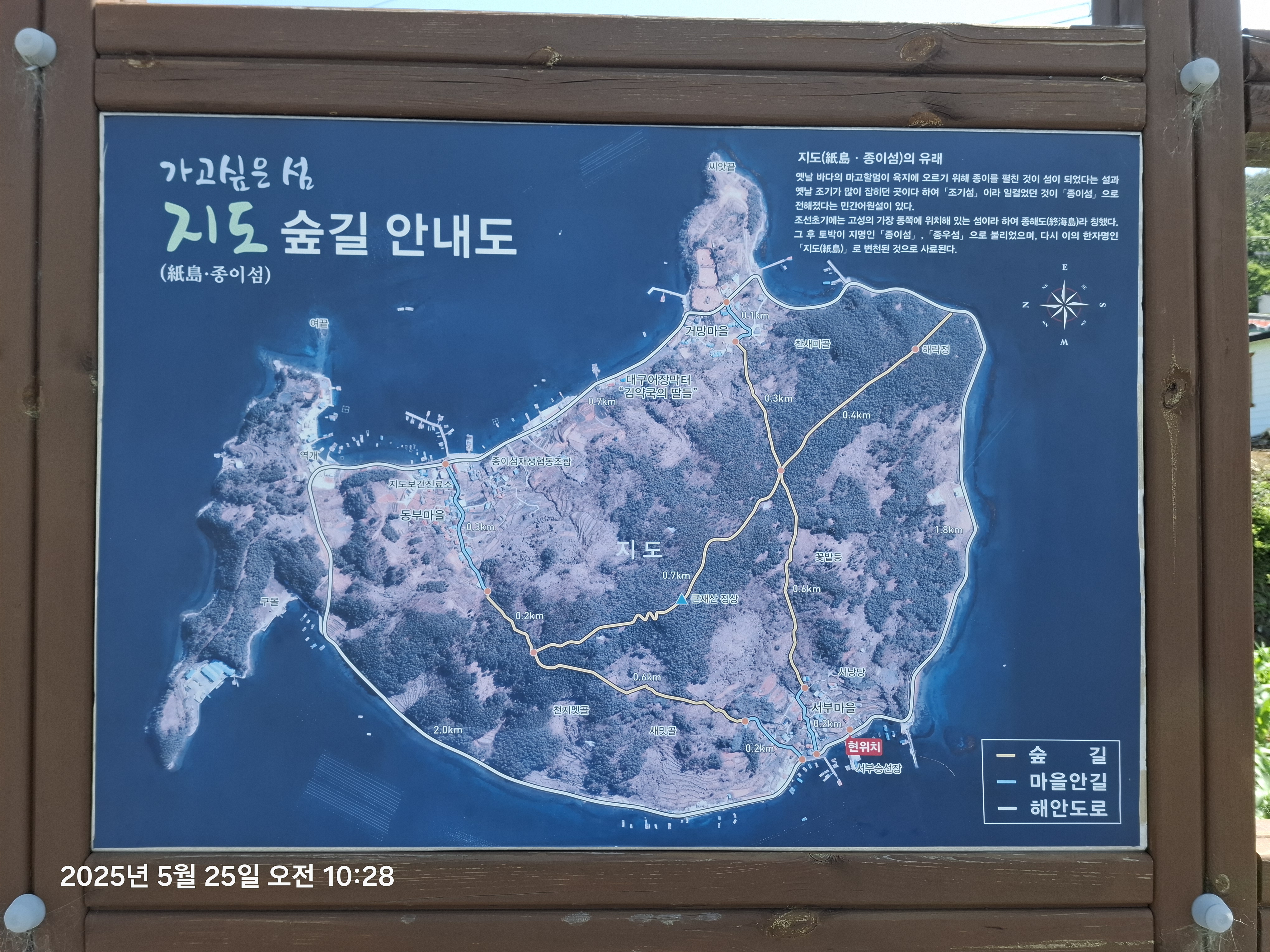 | 참고사항 | 1) 동부마을숲길,서부마을숲길은 나무숲으로 시원함을느낌, 조망권이 확보안됨 등로는 야자메트가 깔려있음 2) 해락정/거망마을/서부마을 이정표에서 서부마을쪽으로 임도길이나 잡풀이 많음 3) 섬내 슈퍼나 식당없음. 4) 배삯은 나올때 지도도선장에서 왕복 4천원 카드계산 |