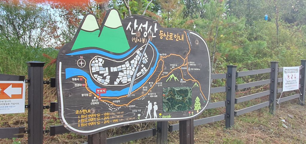 | 산행코스 | 주차장-잔도길-달팽이 전망대-산성산-활성1동 경로당-금시당-수변길-주차장 |