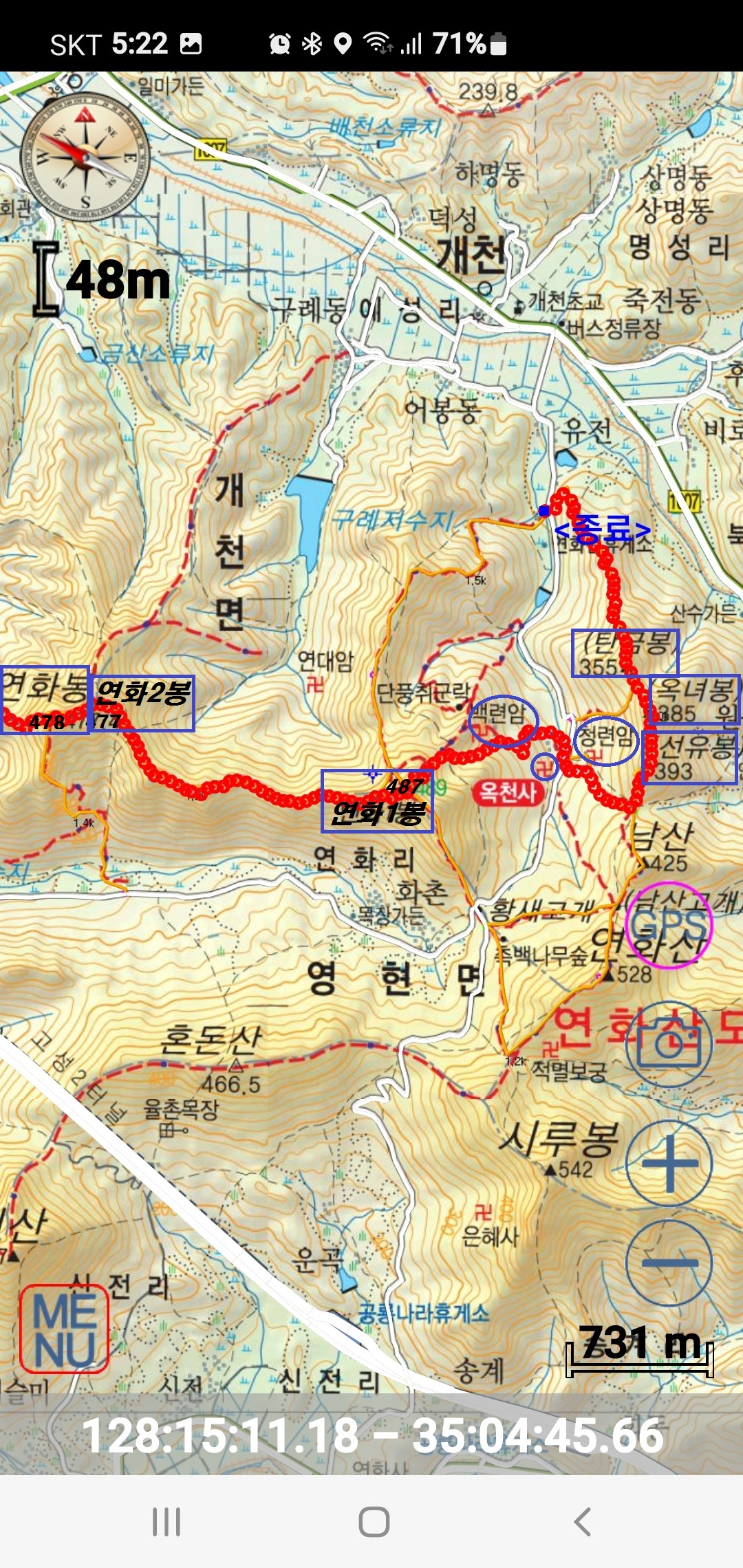 4.7km 82분 [연화봉](478m)(13;27~13;30)[3분]