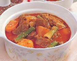 재료 : 쇠고기, 감자, 당근, 양배추, 샐러리, 양파, 홀토마토, 토마토페이스트, 월계수 잎, 바질, 올리브유,소금