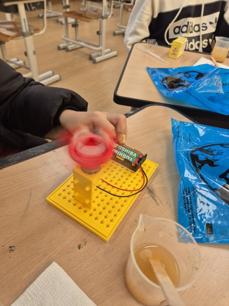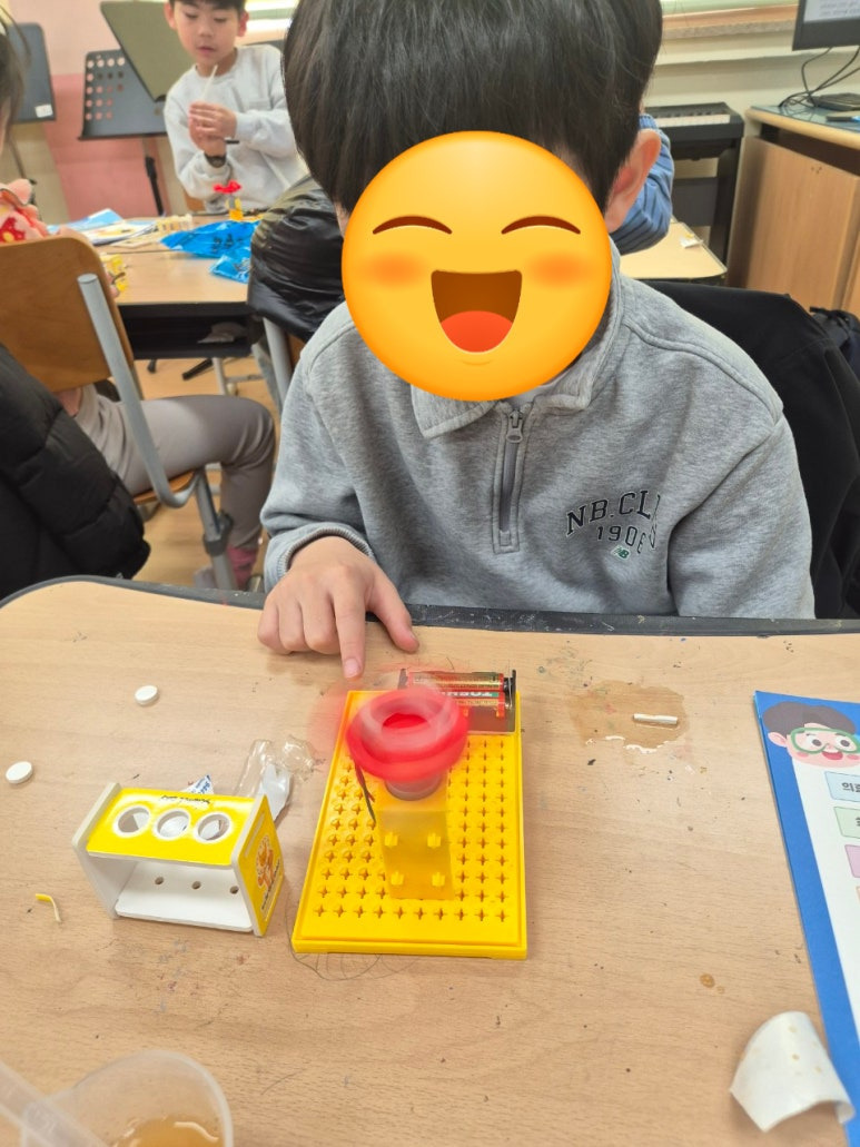 ❗️그리고 튜브에 넣는 양을 세개 튜브에 같은 양을 넣어주세요. 그렇지 않으면 모터가 돌아가다가 분리가 되더라구요. 친구들이 돌아가는 것이 신기하다고 손을 가져다 대기고 하니 꼭 주의 필요합니다. 하나만 넣고 돌리는 친구 두개만 넣고 돌리는 친구들 있어요. 돌리다가 분리되는 일이 발생하니 꼭 주의 주셔야 할 것같아요.