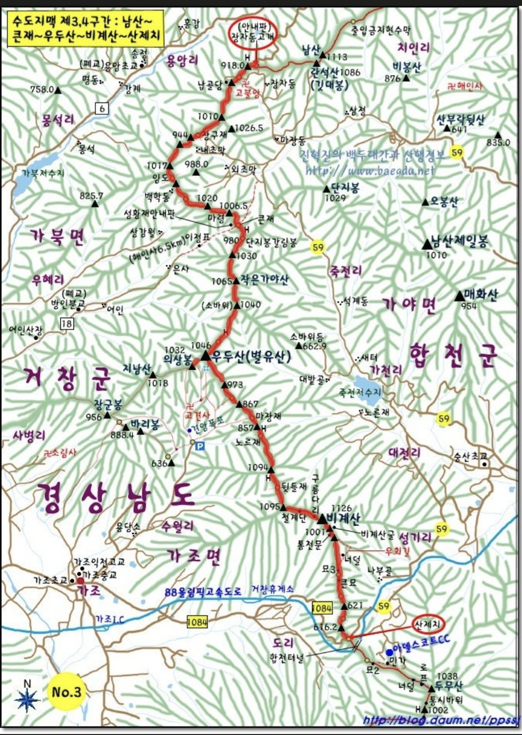 ☞산행경로:장자동고개-917,7m봉-고불암종루-장구재-942,2m봉-1010,7m봉-마령-1001,7m봉-큰재-가야산1064,5m-우두산1046,3m-