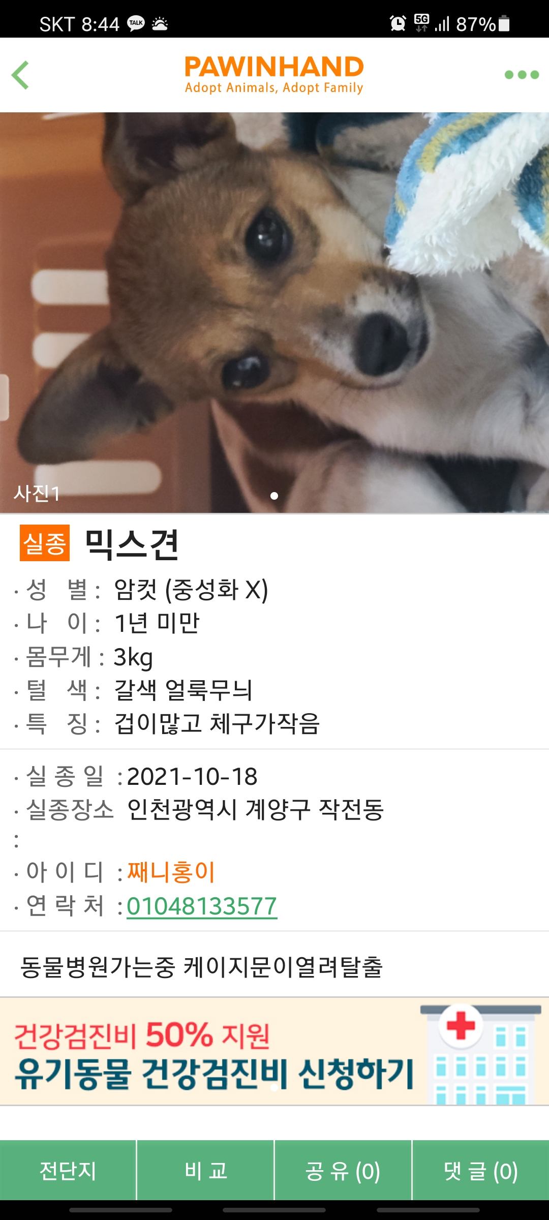 실종강아지를 찾습니다. 작성자째리|작성시간21.10.18|조회수145 목록 댓글 0 글자크기 작게가 글자크기 크게가 유기견입양후 병원가는길 켄넬이열려 도망갔습니다,3kg정도 발바리구요 겁이많아 사람을 무서워합니다.보시면 꼭 제보 부탁드릴게요 감사합니다.https://open.kakao.com/o/gjQ1ABFd 다음검색 현재 게시글 추가 기능 열기 북마크 공유하기 신고 센터로 신고 댓글 댓글 0 댓글쓰기 답글쓰기 댓글 리스트