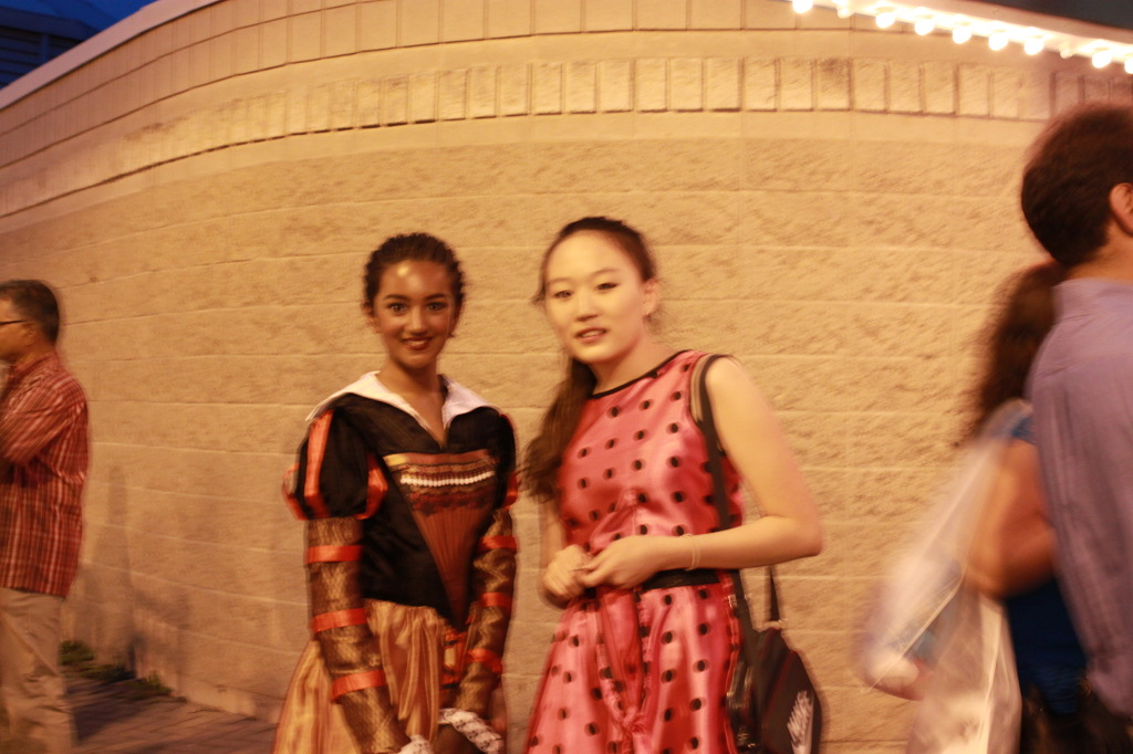 연극이 끝나고 무대의상을 입고 그대로 집으로 향합니다.