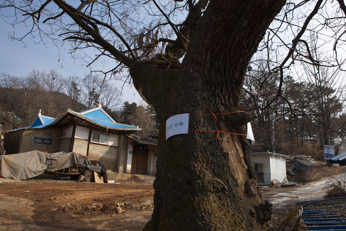 공사가 시작될 즈음 둔터골 회화나무에게 보호수목이라는 명찰이 붙여졌다. 마을 주민들은 다행스럽게 여겼다.