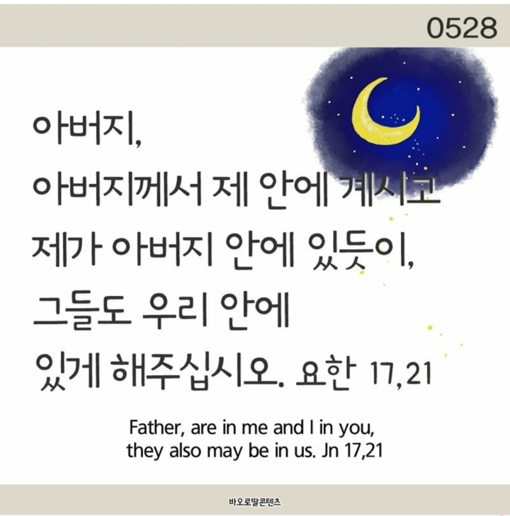 하고 말씀하셨듯이 사람들이 아버지와 아들의 사랑을 온전히 깨닫고 그 안에 머물러 있기를 바라신 것입니다.