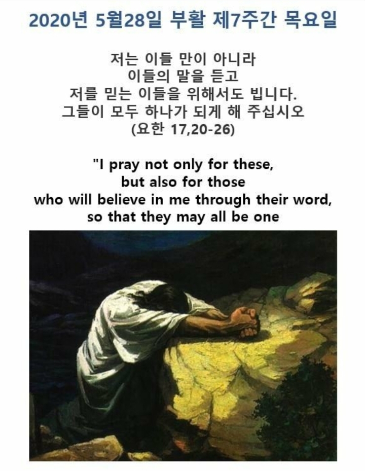 (청주교구 반영억 라파엘 신부님) 2020.5.28.부활 7주간 목요일 (요한17,20-26) <오직 사랑에 사랑을 더하라>