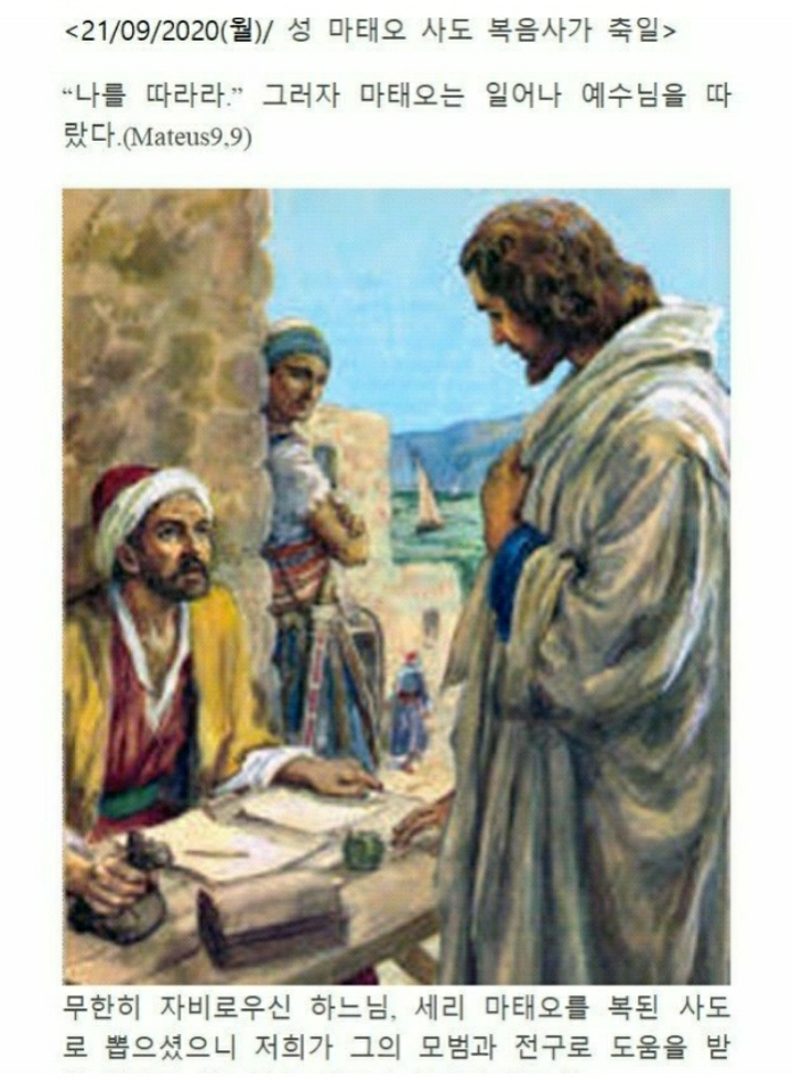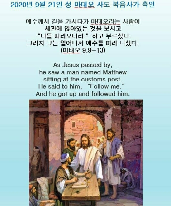 오늘은 마태오 사도를 기억하는 축일입니다.