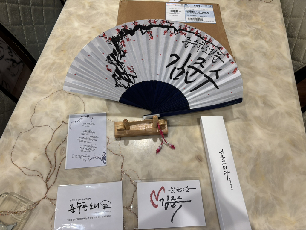 작성자온고지신 작성시간 26.01.05 부채 받던날 촤르르르 부채2개 양쪽으로 펴보면서 '나도 이제 준수님 팬이다! ' 라고 큰소리로 동네방네 외치고 싶을만큼 좋았던 기억이 떠오릅니다.