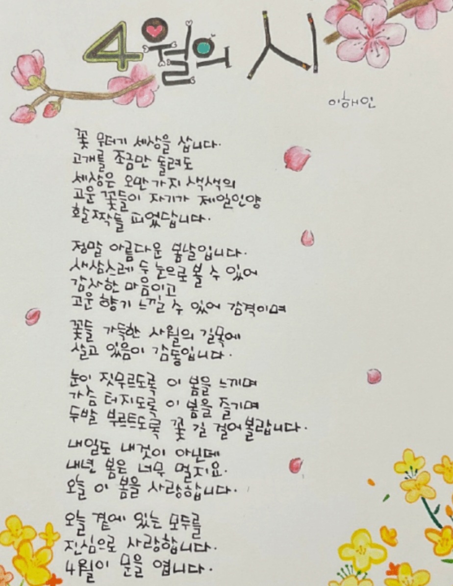 작성자해피사랑 작성시간 26.04.01 이쁜시! 감사해요