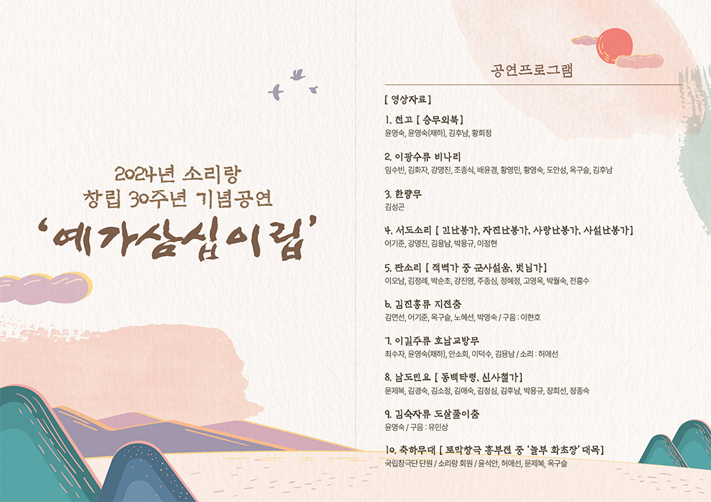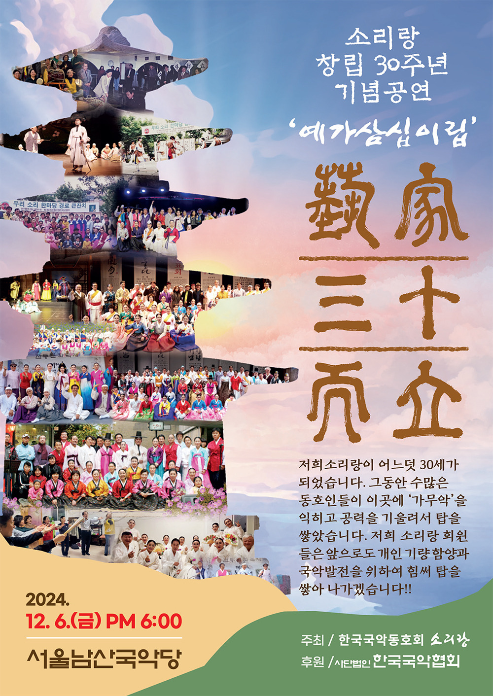 소리랑 창립 30주년 기념공연- 12월 6일 남산국악당 작성자사무국|작성시간24.12.05|조회수51 목록 댓글 0 글자크기 작게가 글자크기 크게가 다음검색 현재 게시글 추가 기능 열기 북마크 공유하기 신고 센터로 신고 댓글 댓글 0 댓글쓰기 답글쓰기 댓글 리스트