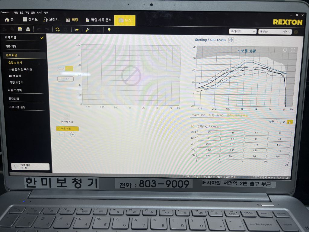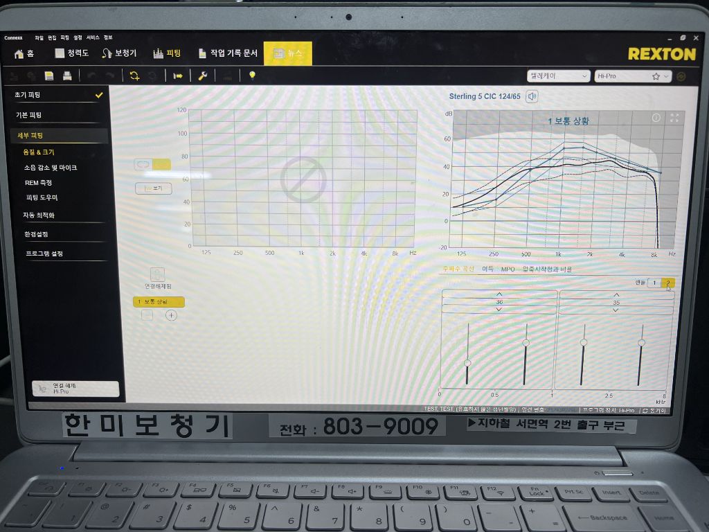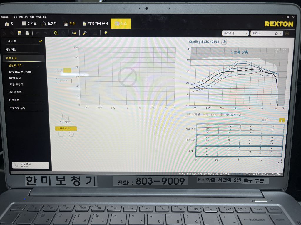 [한미보청기구입]부산 한미보청기난청센터 보청기고객의 독일 렉스톤보청기사 피팅프로그렘 소리조절 내역