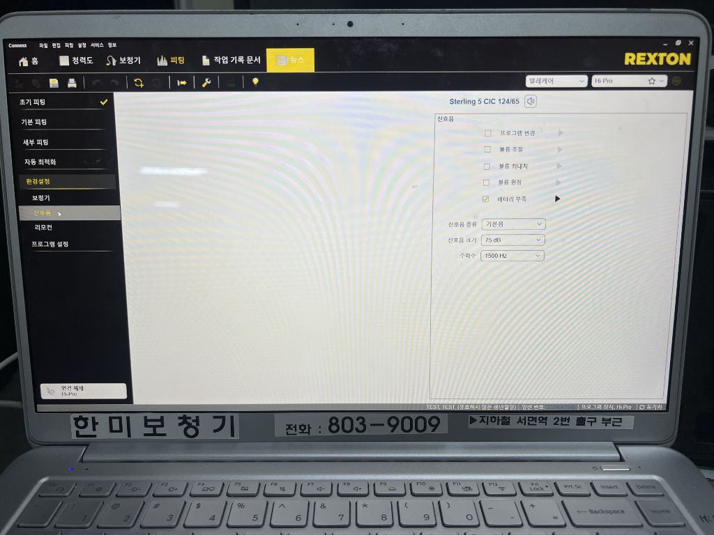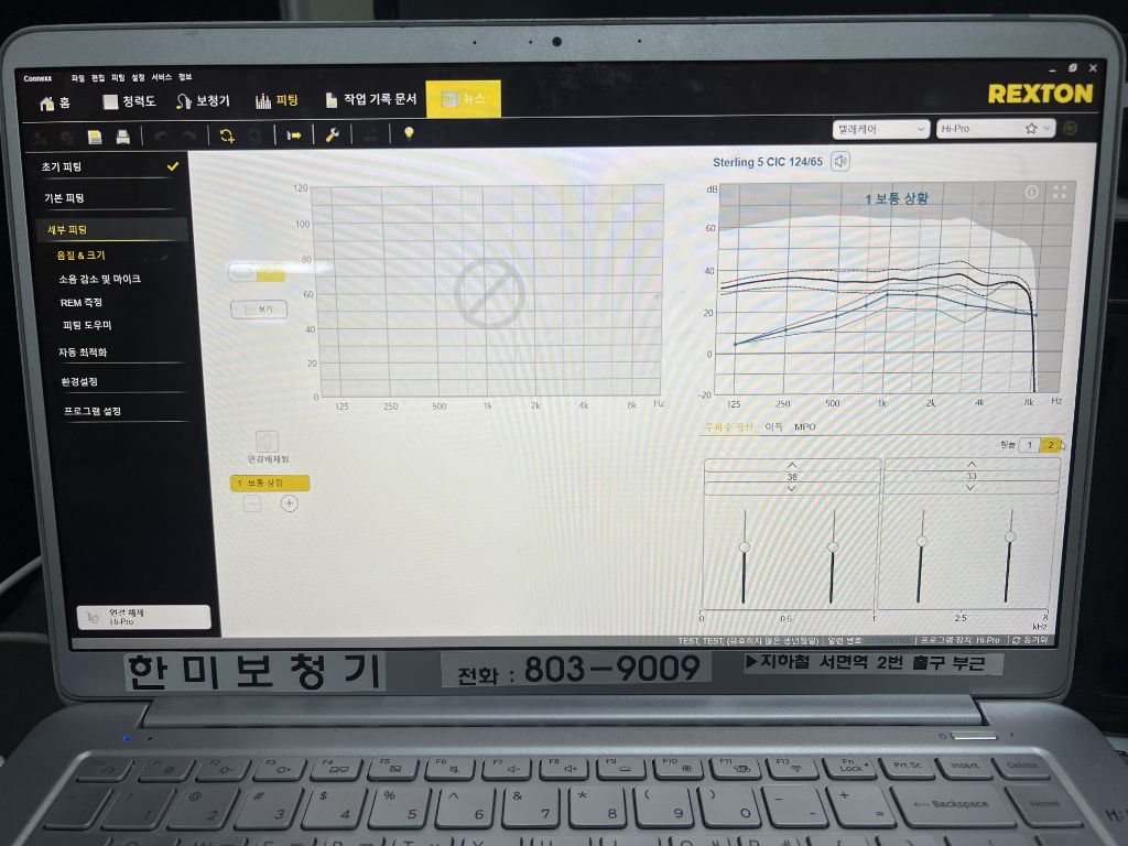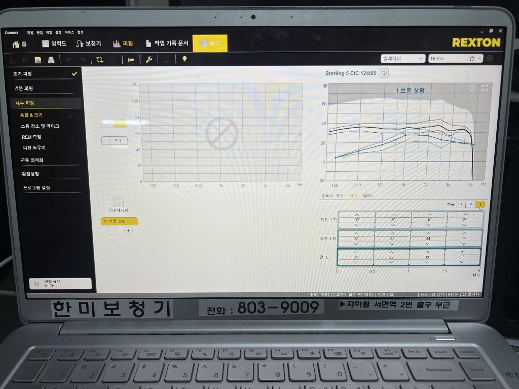 [한미보청기구입]부산 한미보청기난청센터 보청기고객의 독일 렉스톤보청기사 피팅프로그렘 소리조절 내역
