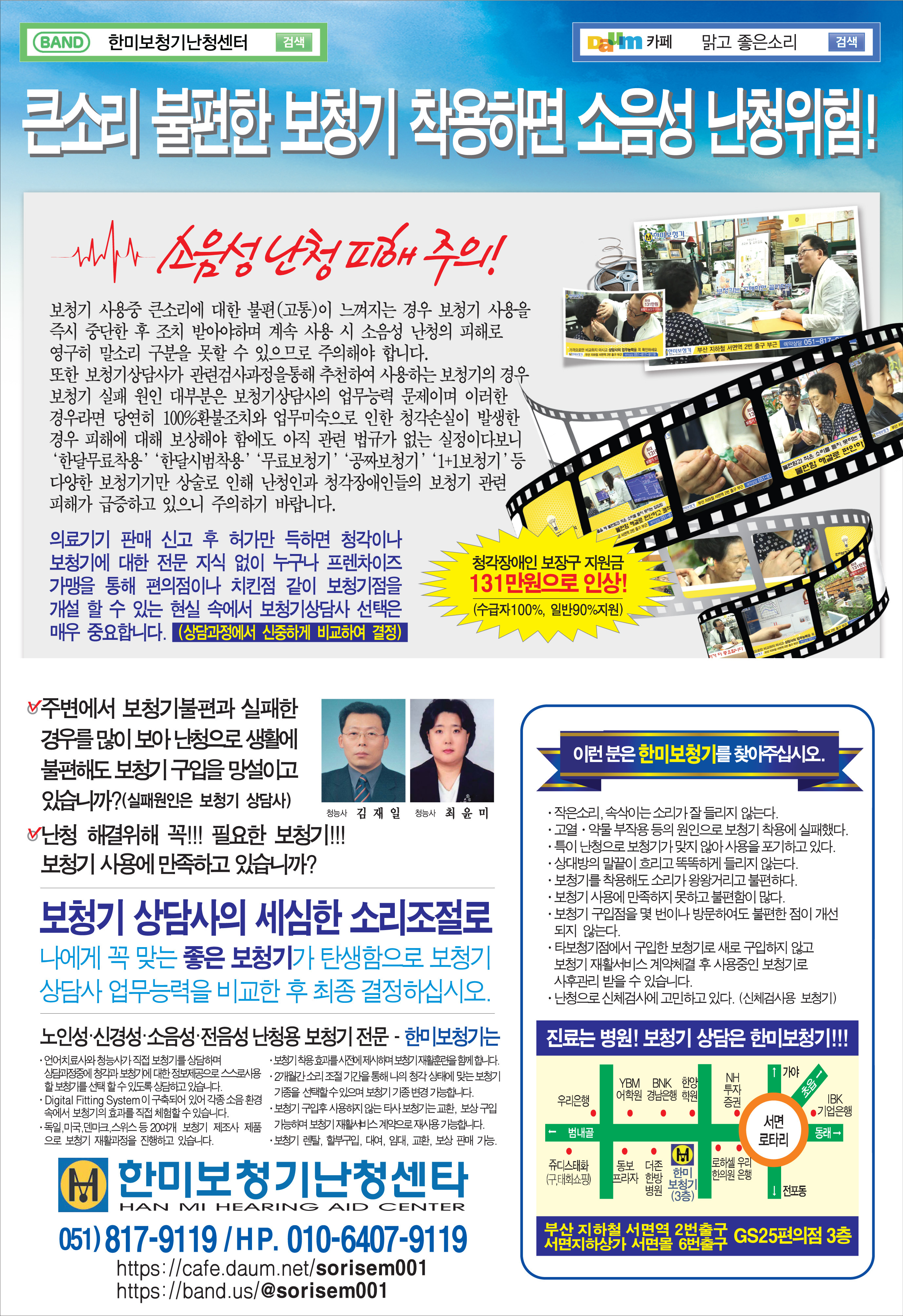 "맑고 좋은소리" 인터넷 다음카페와 부산 한미보청기를 운영하고있는