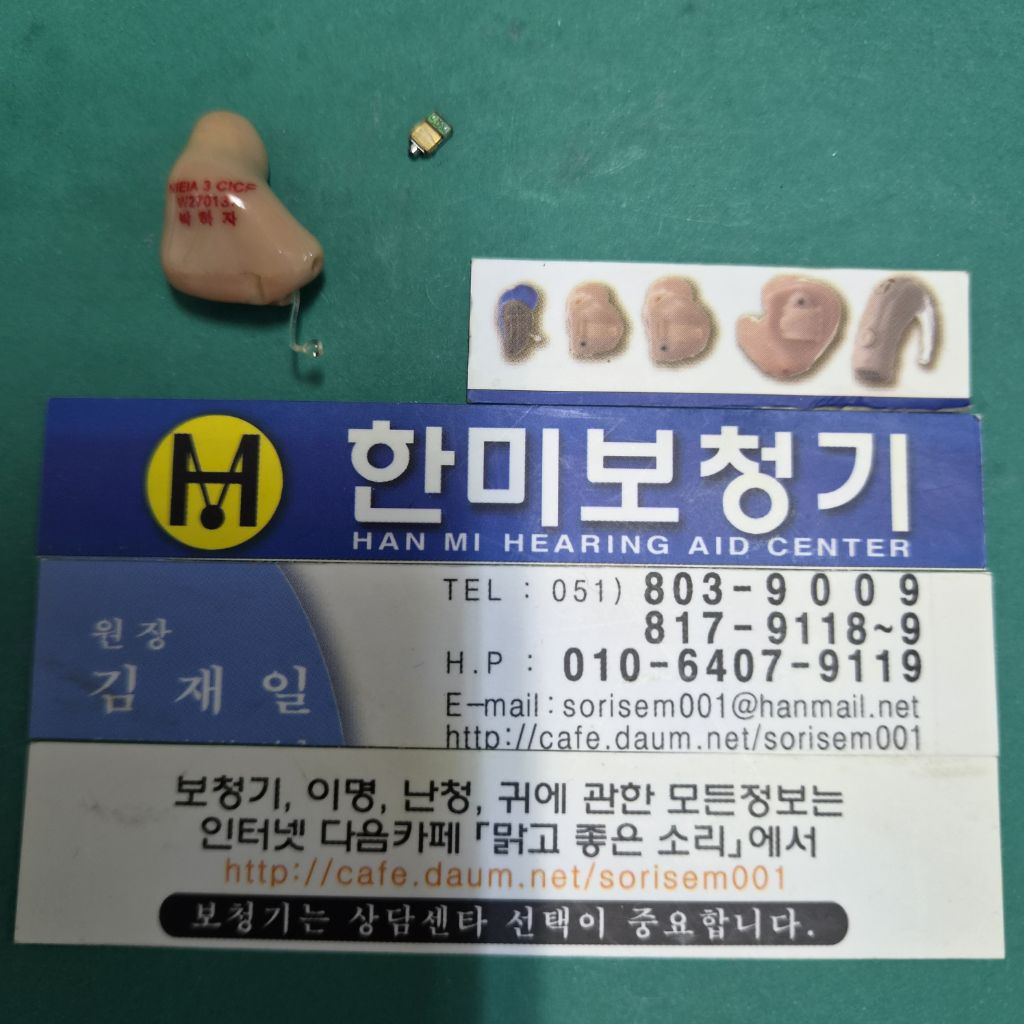 [소모성부품교체]부산 한미보청기난청센터 보청기고객의 디만트코리아주식회사에서 제조하는 버나폰보청기사 고막형보청기와 교체한 MIC