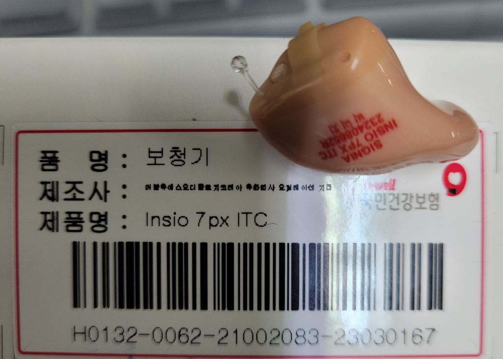 [정부지원보청기]부산 한미보청기난청센터 보청기고객의 독일시그니아보청기사 고막형보청기와 국민건강보험공단 보조기기 스티커