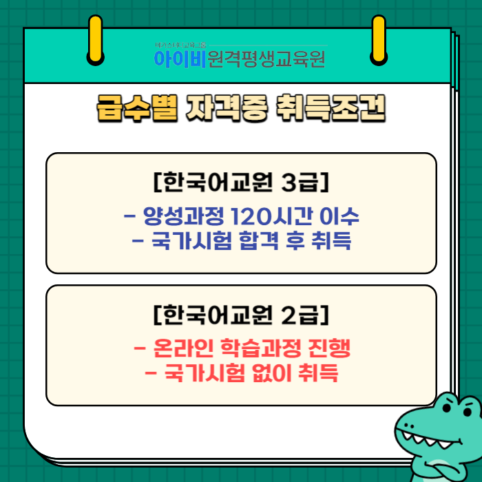 한국어교원 자격증을 취득해주셔야 하기 때문에