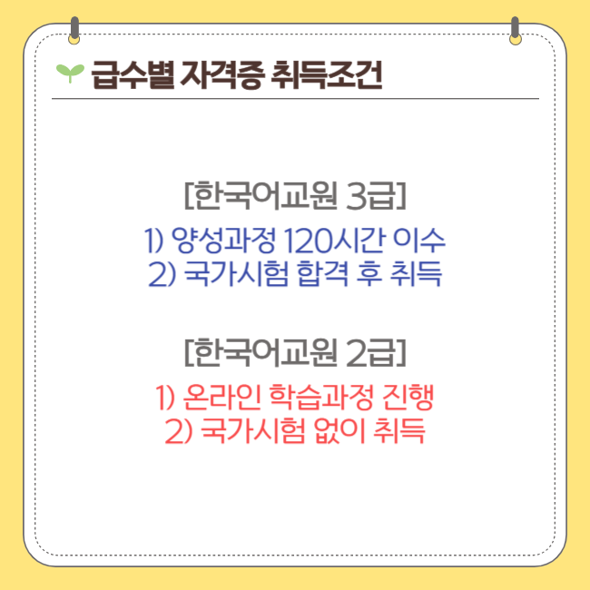 한국어교원 자격증은 1급, 2급, 3급이 있으며