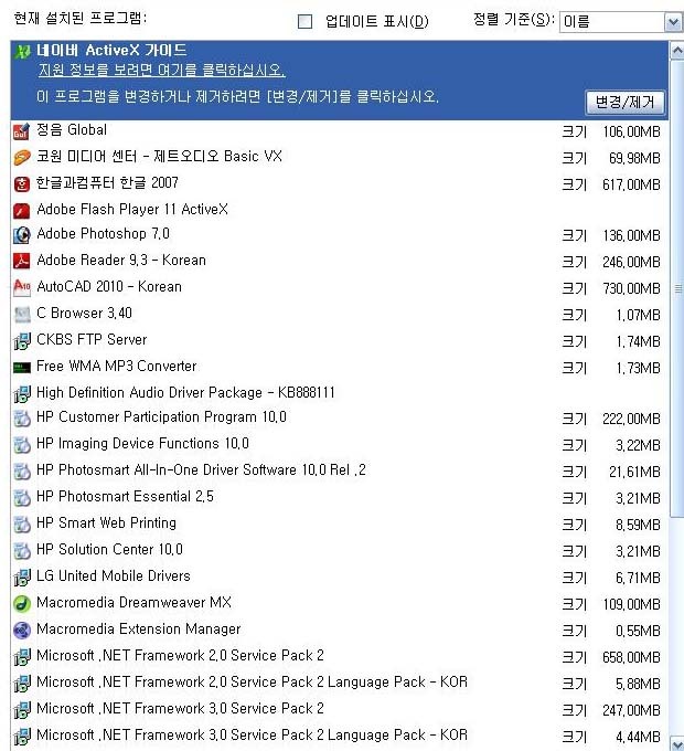 pc 성능을 보존하려면 운용 목적에 따라 맞는 s/w만을 설치해야 할 것 같군요.