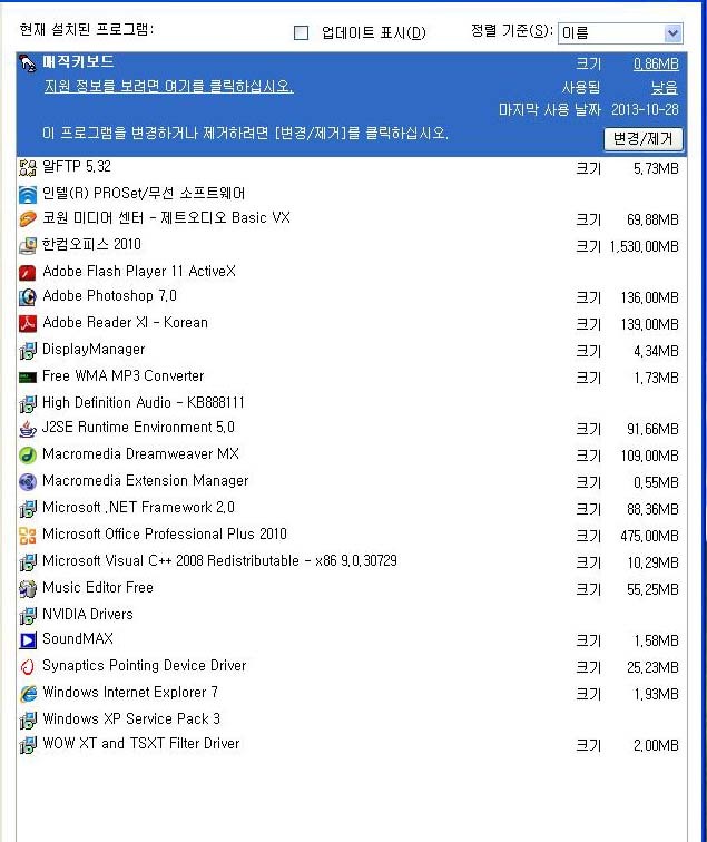 3. 설치된 프로그램을 확인 메모해 둡니다.