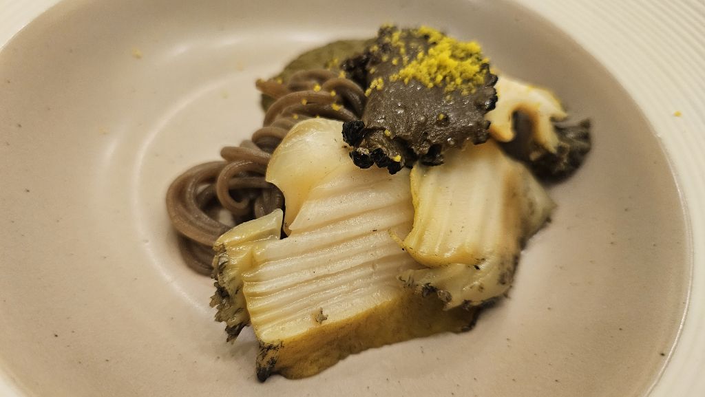 오늘의 특선 요리이라는 전복과 비빔 모밀..