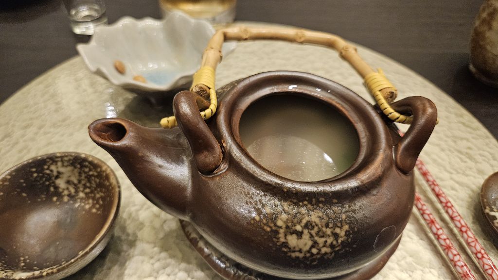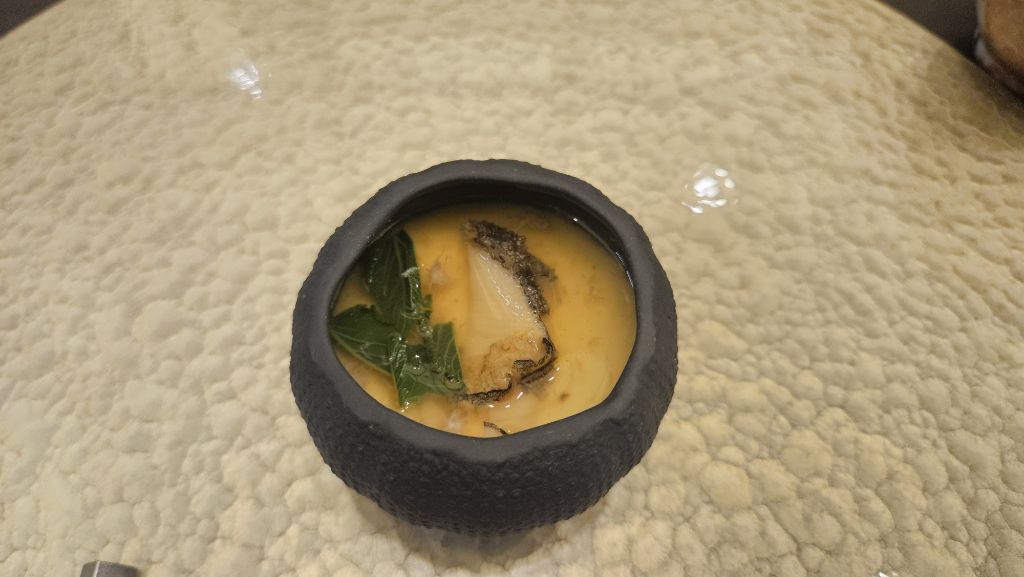 오늘의 진미인데 전복과 새우 등이 들어간 스프입니다..