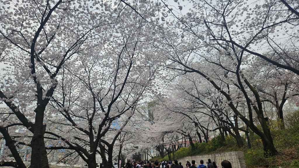 벚꽃 터널 아래로 상춘객이 잔뜩 입니다..