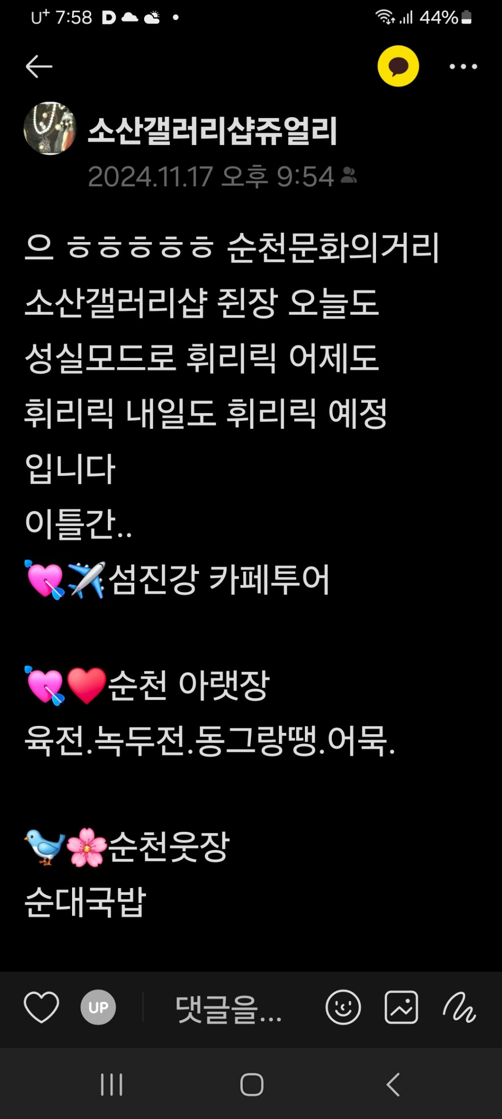 순천문화의거리. 소산갤러리샵. 소산한명숙. 한국미협. 순천미협. 맛집투어 #맛스타그램 #카페투어#섬진강#화개장터#구례사성암#순천아랫장(2.7.12.17.22.27.