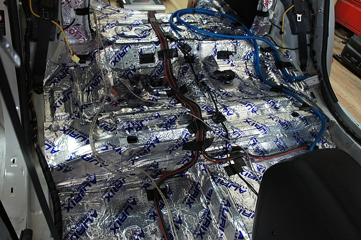일차 알류미늄 매트 도포후 이차로 선재들 스피커케이블 RCA 인터선 그리고 전원선재들이 FM 원칙에 맞추어 행렬하고