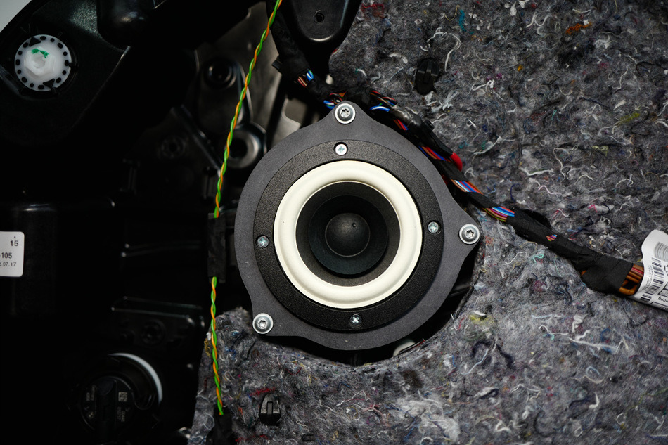 순정 BMW 미드스피커를 탈거하고 카만의 미드우퍼를 입력시켜 주었습니다 !!