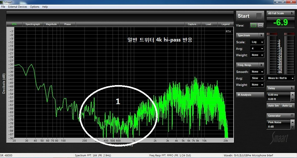 일반적으로 고음을 재생하는 트위터는 시작점이 4000hz 부터 재생이 시작됩니다