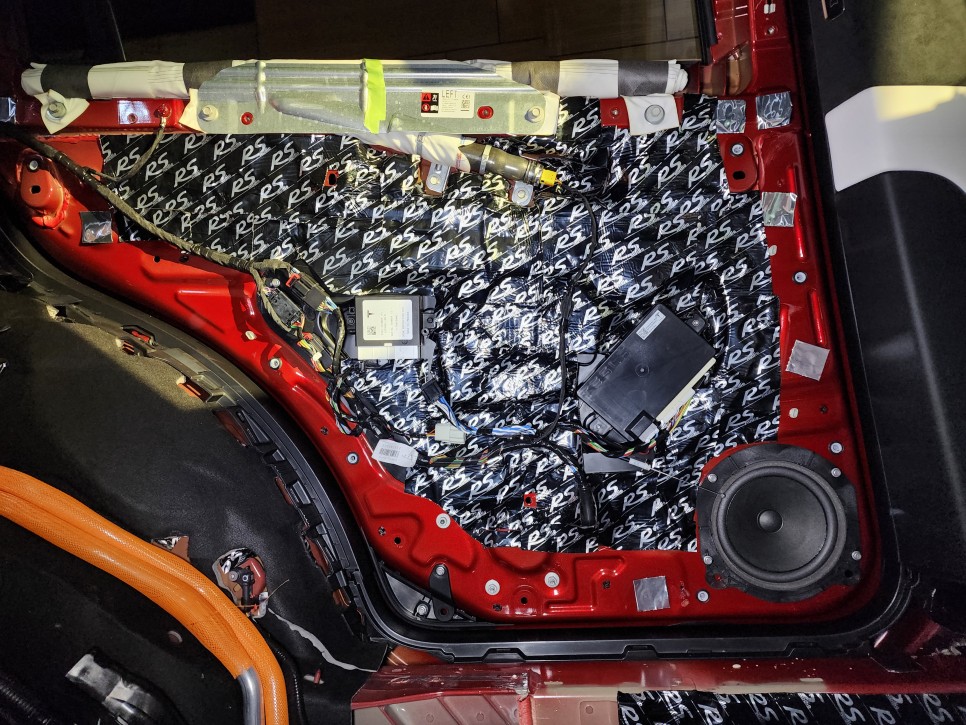 RS 압축 신슐레이터로 도어 트림 후면으로 작업이 들어갑니다